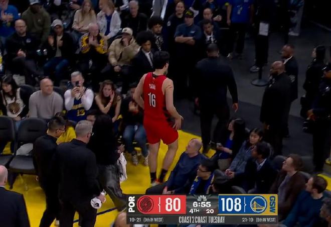 北京時間今日,在NBA常規(guī)賽中,波特蘭開拓者隊在客場對陣金州勇士隊。在比賽進行到第四節(jié)時,讓中國球迷揪心的一幕出現(xiàn)瞭:楊瀚森在一次進攻中積極拼搶,但後腦勺不慎撞到瞭勇士後衛(wèi)威爾-理查德膝蓋,痛苦倒地。隨後開拓者的隊醫(yī)進行檢查後讓其返回更衣室進行檢查。在進行短暫地離場檢查後,楊瀚森看起來問題不大重返比賽,並在比賽還剩2分58秒時再度披掛上陣。