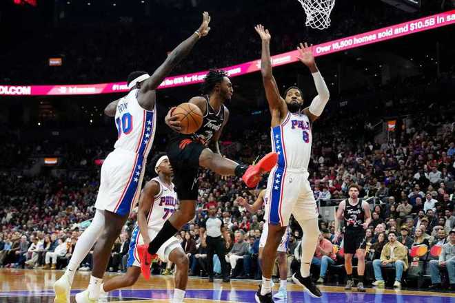 中場休息回來,領先優(yōu)勢巨大的76人有所松懈,他們在第三節(jié)首次單節(jié)得分不足20分,猛龍第二次單節(jié)得分25+。76人進攻火力下滑,猛龍則是多點開花反撲追分,76人單節(jié)19-26被追回7分,三節(jié)結(jié)束76人99-77領先猛龍。前三節(jié)比賽,76人55中34超過6成準星,其中三分30中15,馬克西28分、恩比德19+6+4,引領76人4人得分上雙;猛龍三分27中5,英格拉姆15+7+6率隊5人得分上雙。