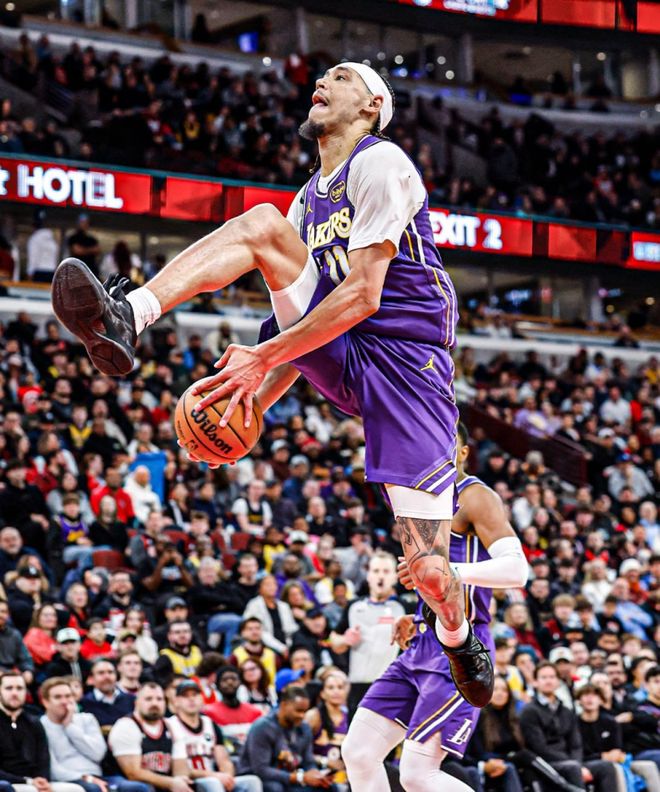 海斯身高2米13,扣籃時自帶“高個球員特效”,效果好壞姑且不論。不久前他還在湖人隊的一場常規(guī)賽中完成過一記胯下扣籃,顯然擁有一套專業(yè)級別的扣籃動作庫。海耶斯來自得克薩斯大學(xué),在2019年NBA選秀中于首輪第8順位被亞特蘭大老鷹隊選中。本賽季,海耶斯多數(shù)時間以替補身份為湖人出戰(zhàn),場均能貢獻(xiàn)6.4分、3.9個籃板,投籃命中率更是高達(dá)驚人的77.3%。