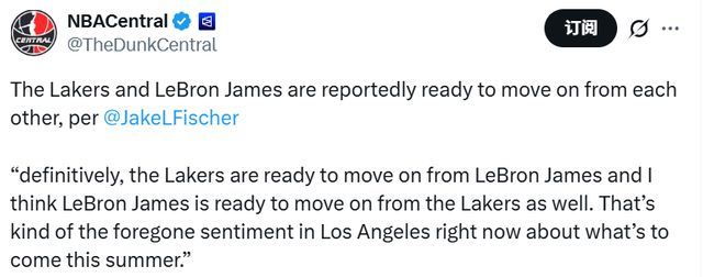 北京時間2月3日,據(jù)名記Fischer報道,湖人已經(jīng)準(zhǔn)備好與勒布朗-詹姆斯分道揚鑣,詹姆斯也準(zhǔn)備好離開湖人隊了。這幾乎是目前洛杉磯對于今年夏天即將發(fā)生的事情的普遍看法。